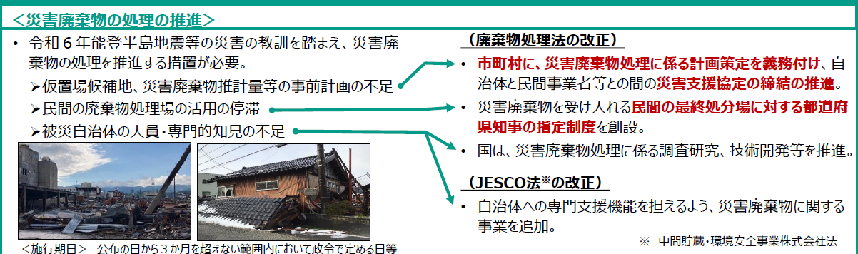 - 災害時の受け入れを確保するため、民間最終処分場の認定制度も創設されます。