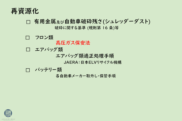 Act on Recycling of End-of-Life Automobiles説明