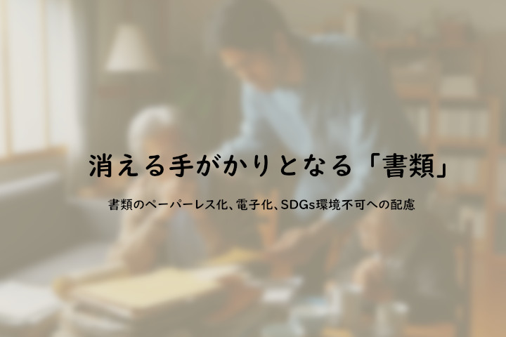 消える手がかりとなる「書類」 そもそも、整理されていない、どこかにあるはずの書類を探すにも相当な手間がかかりますが、近年それに輪をかけて書類の捜索を難しくしているのが、書類のペーパーレス化、電子化です。 銀行の預金通帳をはじめ、公共料金の請求書やお知らせなど、経費節減と環境負荷の軽減(SDGsへの貢献)を目的として、次々に紙から電子へと移行しています。