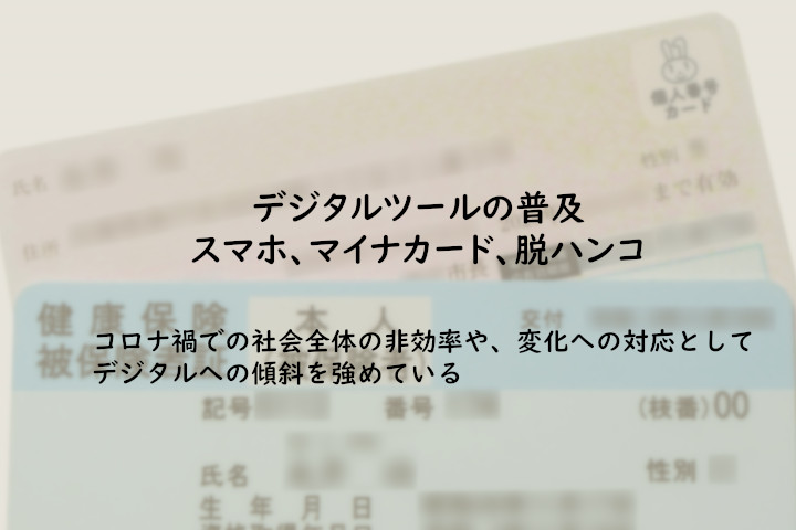 コロナ禍のリモートワークを阻む要因としてあげられた書類への押印について、国の方針により脱ハンコが掲げられ、各種書類への押印への必要性が検証されました。また、少子高齢化社会での、若年層人口減少による働き手の不足を見据え、国はデジタル技術による行政のデジタル化を推進しています。デジタルによる地域活性化を進め、さらには、地方から国全体へ、ボトムアップの成長を実現するデジタル田園都市国家構想への取り組みを強めています。電子帳簿保存法や、e-文書法など、保存書類など電子化の流れも含めデジタルの推進は国全体的な大きな流れとなっています。 また、3G停波によりガラケーが使えなくなることにより、高齢者のスマートフォンへの移行が急速にすすみました。 高齢者の保有するデジタルツール(スマホやタブレット)は近年大きく増加しています。コロナ禍を経て、普段対面できない家族や友人とのコミュニケーション手段として、あるいは巣ごもり時間の相棒としてデジタルツールを活用するシニアも増えてきました。地図や天気、ニュースやSNSなどを使う方も多くいます。 また、携帯各社の3G停波で、ガラケーが終了することで、スマホに乗り換えざるを得ない状況が、シニア層へのスマホへの乗り換えを後押しした側面もあり、デジタルツールはシニア層にとってより身近になっています。