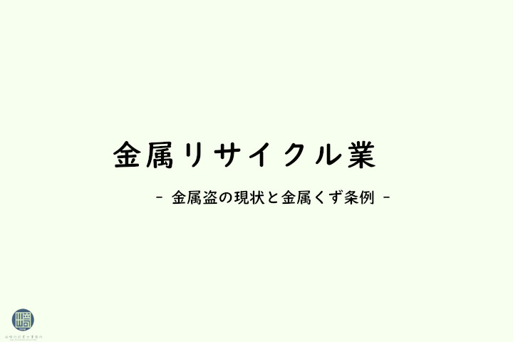 金属リサイクル業をとりまく金属盗難の現状と金属くず条例・規制についてまとめました。