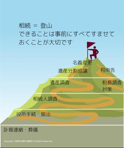 相続=登山に共通することは何度も申し上げますが、周到な計画と準備です。上りのゴールは頂上、名義変更・遺産の受取完了です。